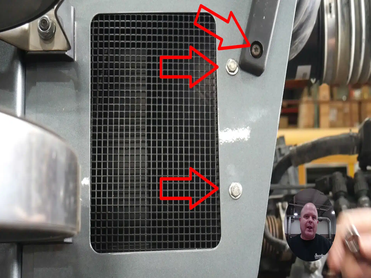 I have a picture of the fresh air filter mounted inside the fresher intake to give you an idea of where it mounts in the fresh air. Now, I’m going to show you how you would install the fresh air filter if your fresh air intake is already mounted to the box and to the truck, and I’m going to draw your attention to these three fasteners right here.